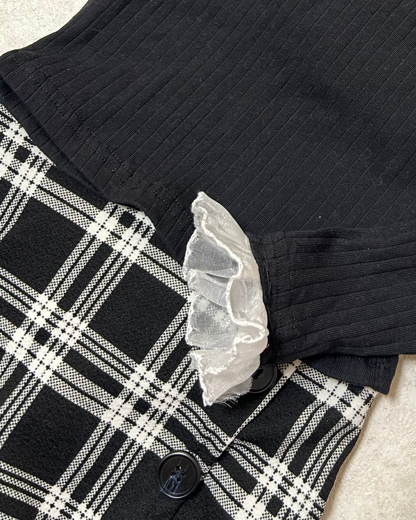 おしゃれでありながらも快適な着心地が魅力のこのチェック柄スカパンセットアップは、カジュアルな日常使いから特別なお出かけまで、幅広く活躍するアイテムです。軽やかな素材を使用しており、さらりとした肌触りが楽しめます。スカパンのデザインが、動きやすさと女の子らしさを兼ね備えた一着です。