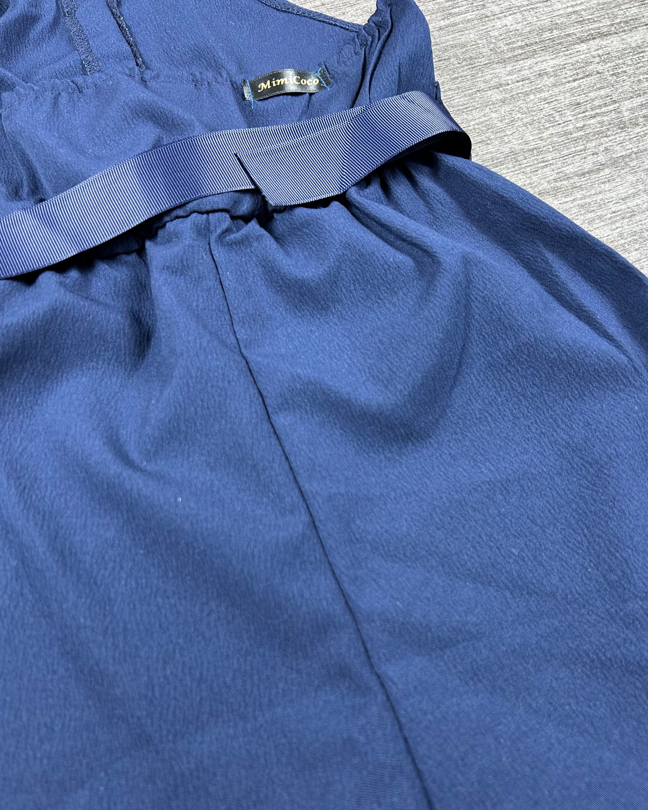 ホルターネックデザインとベルト付きのこのオールインワンは、カジュアルなお出かけや特別なシーンにもぴったりなアイテムです。シンプルながらもスタイリッシュなシルエットが女の子らしさを引き立て、きちんと感と可愛らしさを両立させます。軽やかな素材感で、暑い季節でも快適に過ごせる一着です。
