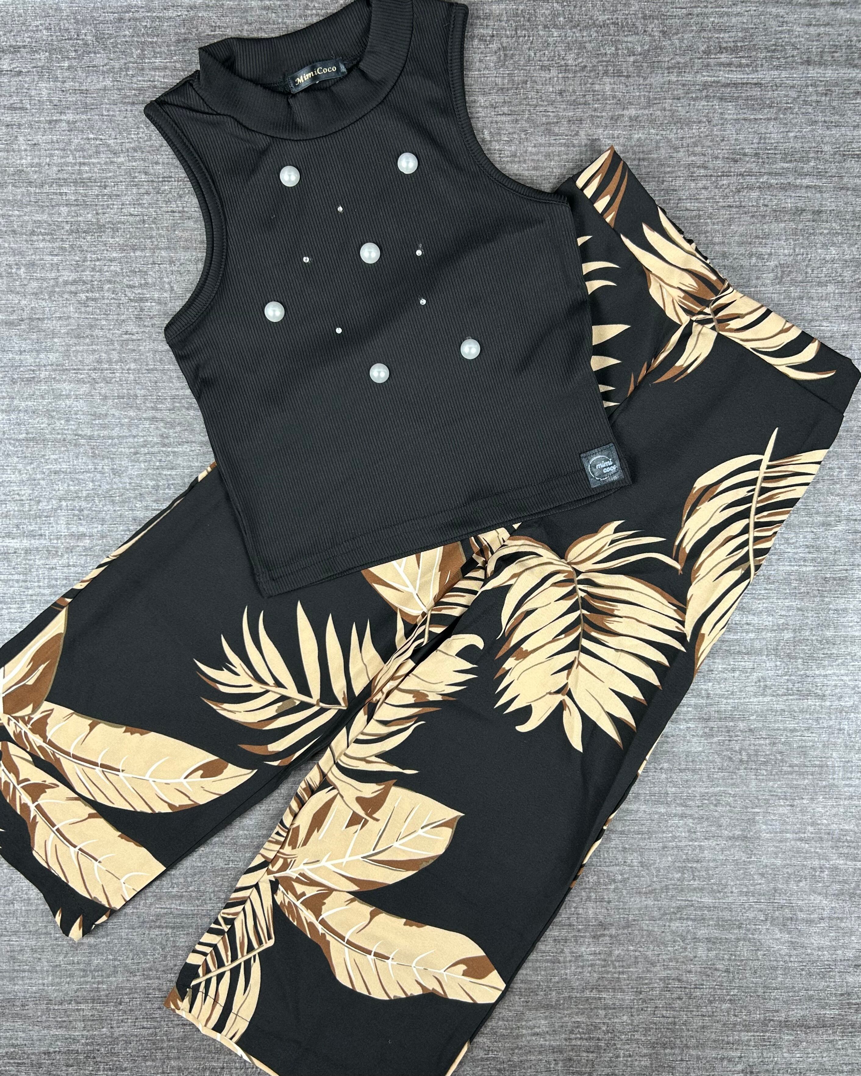 パール付きのタンクトップと花柄のワイドパンツがセットになったこのアイテムは、夏のお出かけにピッタリの一着です。煌めくパールが女の子らしさを引き立て、華やかな花柄が存在感を放つデザインが魅力的です。軽やかな素材感で、暑い季節でも快適に過ごせること間違いありません。