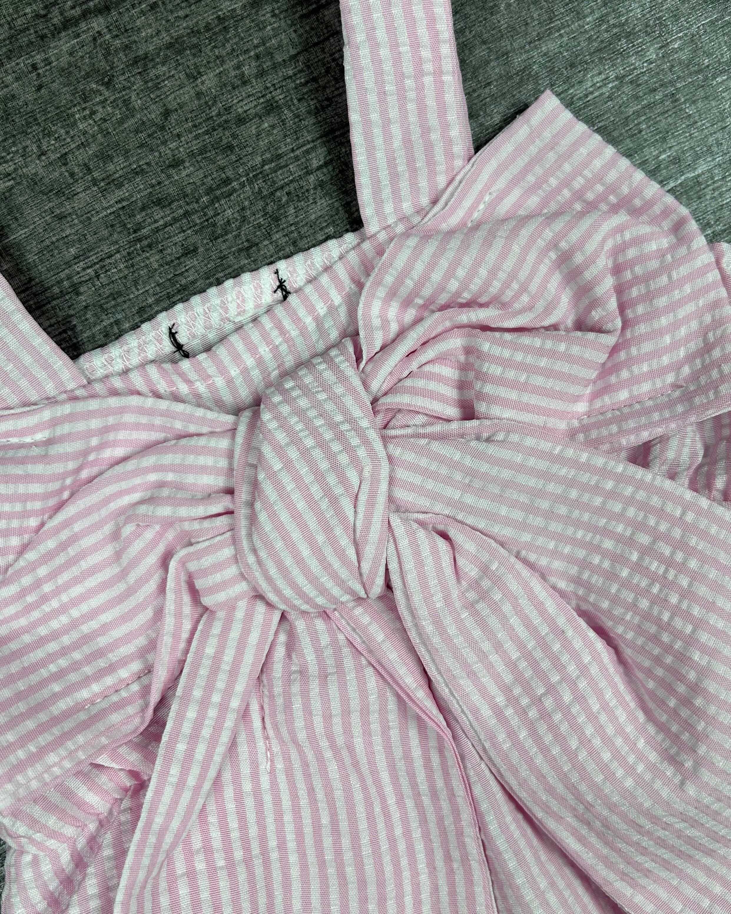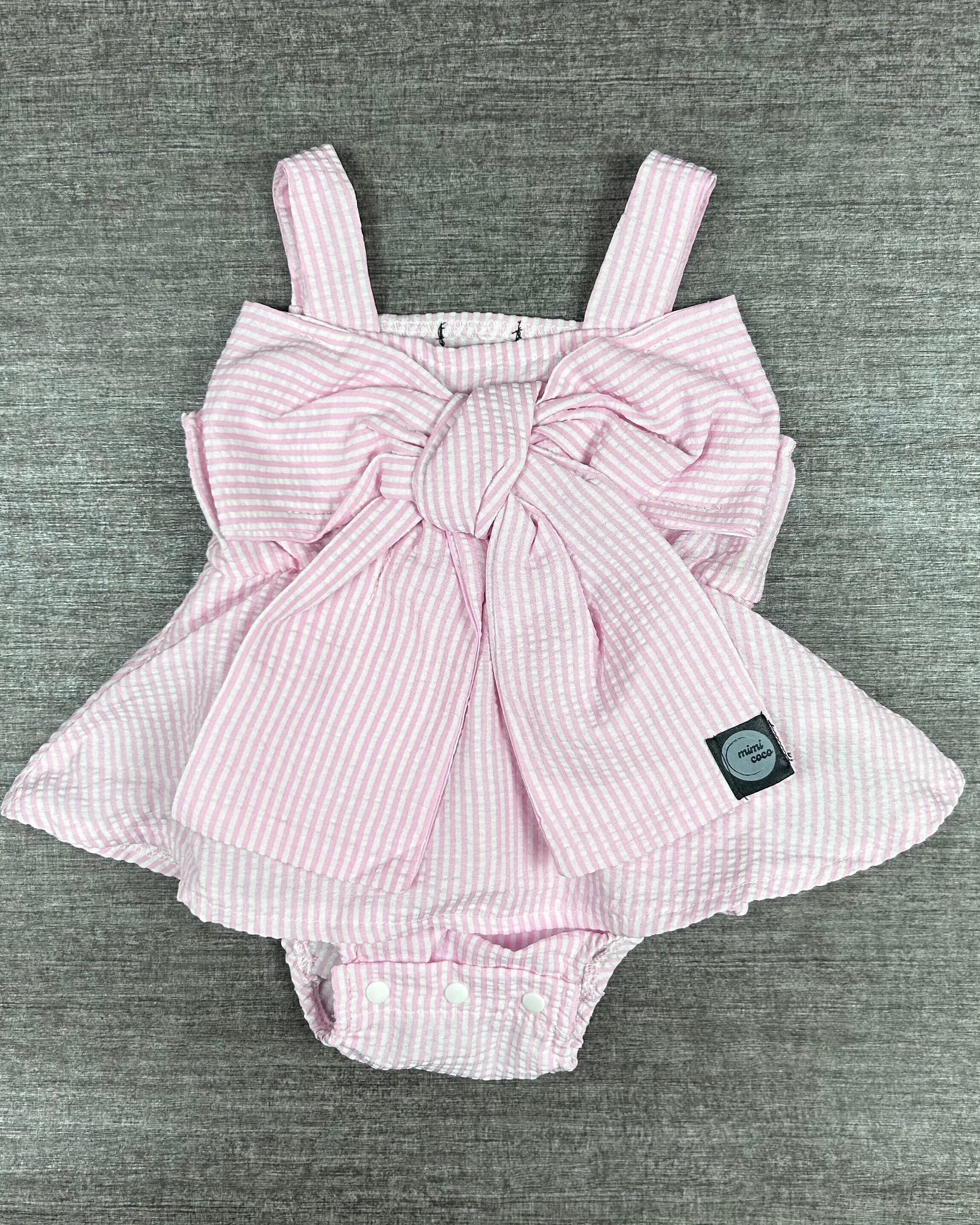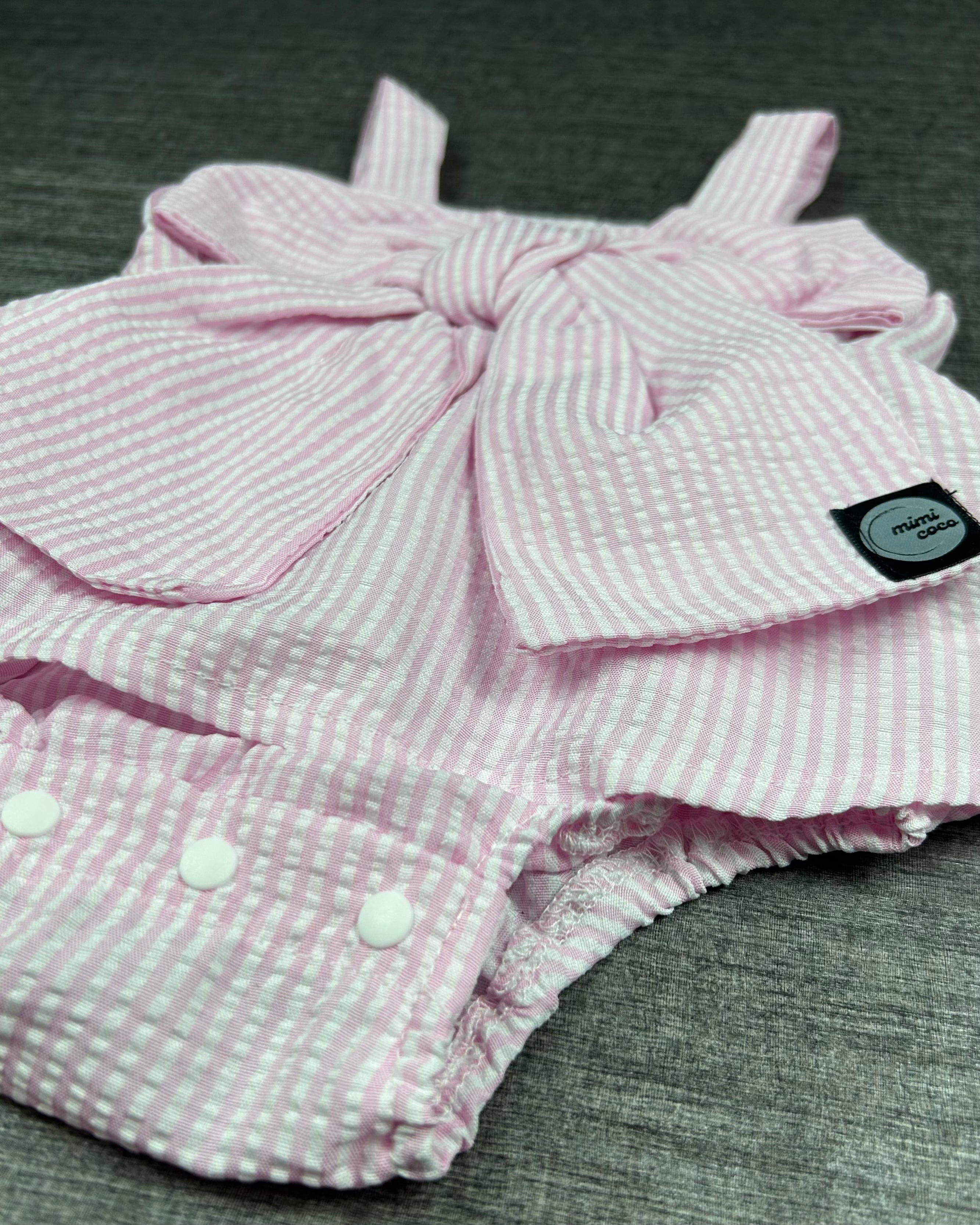 このロンパースは、愛らしい大きめのリボンが特徴です。柔らかな素材が赤ちゃんの肌に優しく、特別なお出かけや日常使いにもぴったりで、さらに可愛らしさを引き立てます。快適な着心地を提供し、自由に動き回れることができます。