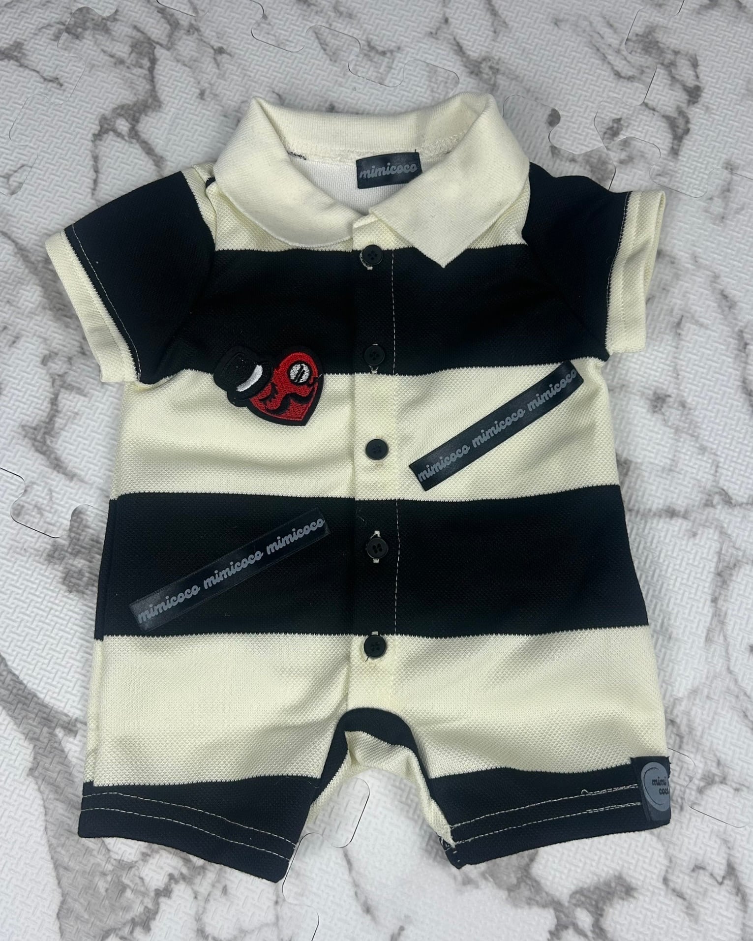 このロンパースは、男の子向けにデザインされたおしゃれなボーダー柄と可愛らしいワッペンが特徴のアイテムです。日常使いやお出かけにピッタリな一品で、赤ちゃんの元気な姿を引き立てます。柔らかな生地を使用しているため、赤ちゃんの肌にも優しく、快適な着心地を実現しています。