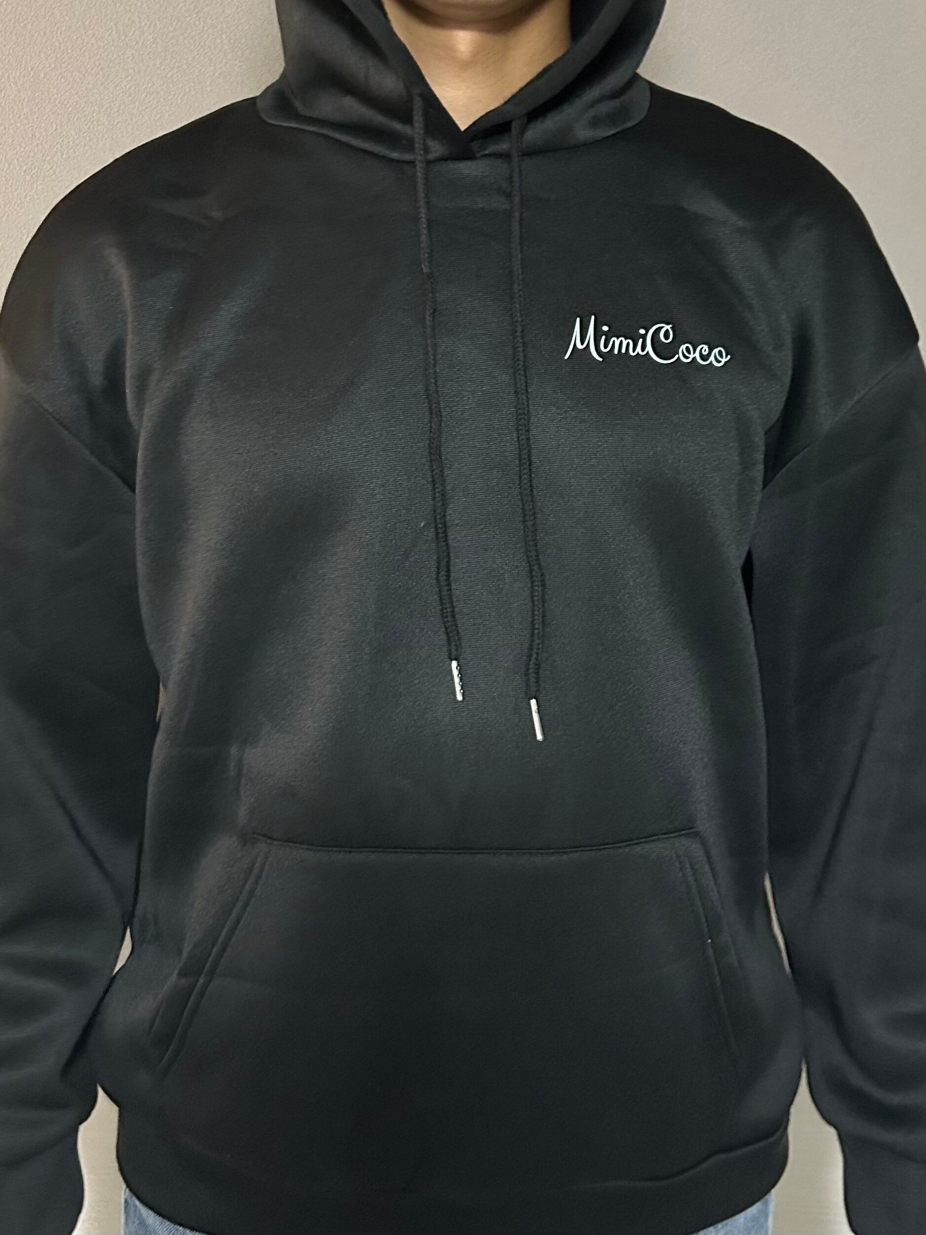 本パーカーは、MimiCocoネームが全面、バック、そしてフードのサイドにプリントされたデザインが特徴で、シンプルながらも個性的な印象を与えます。裏起毛素材を使用しており、秋冬にぴったりな暖かさを提供するこの一着は、カジュアルな日常使いからお出かけシーンまで幅広く活躍します。どんなコーディネートにも合わせやすく、コーディネートの幅を広げるアイテムです。