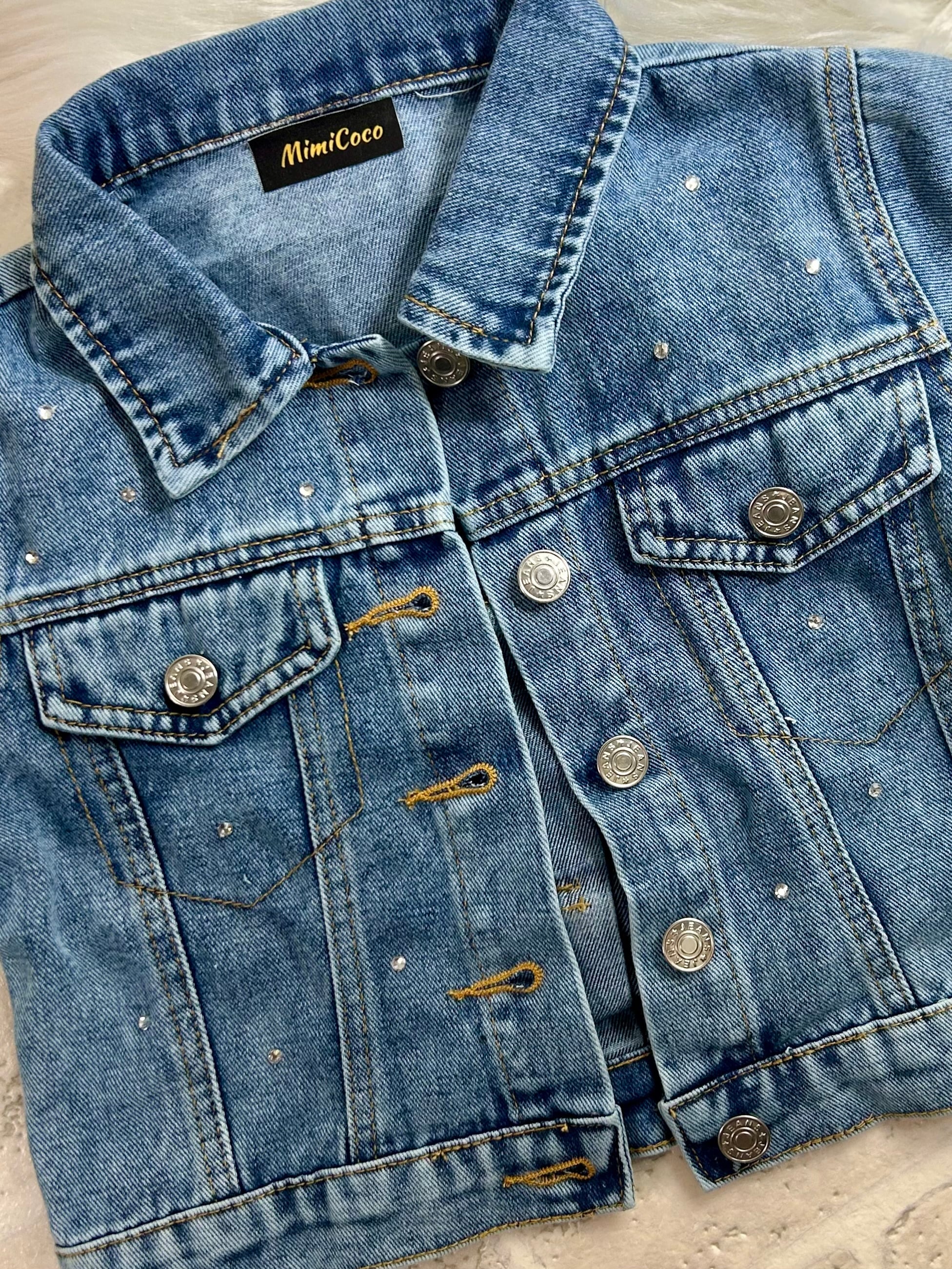 こちらのデニムジャケットは、全面にラインストーンがあしらわれた華やかなデザインが特徴です。バックにはMimiCocoロゴとリボンが施されており、シンプルながらも個性的な印象を与えます。このアイテムは、カジュアルな日常使いから特別なお出かけまで幅広く活躍し、これからの季節にもぴったりな一枚です。